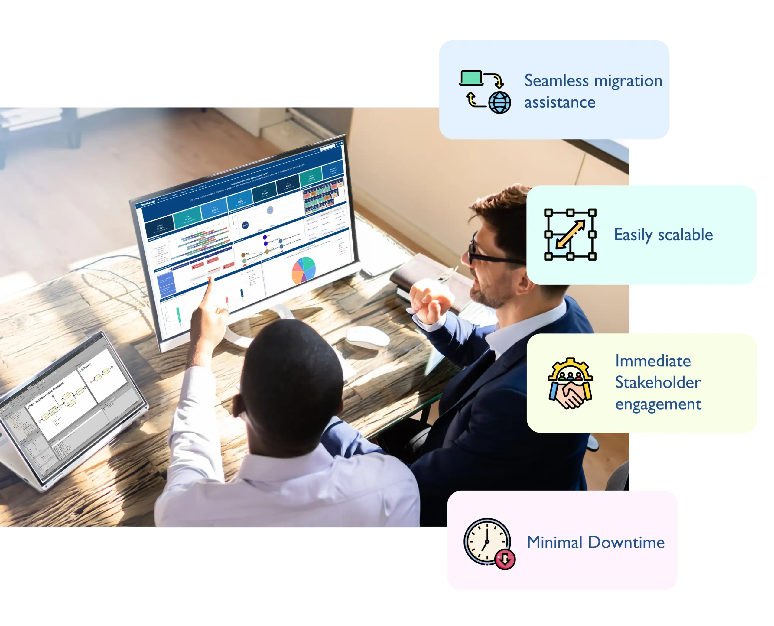 Migrate smoothly with expert assistance, model consolidation, and minimal disruption to your current setup.